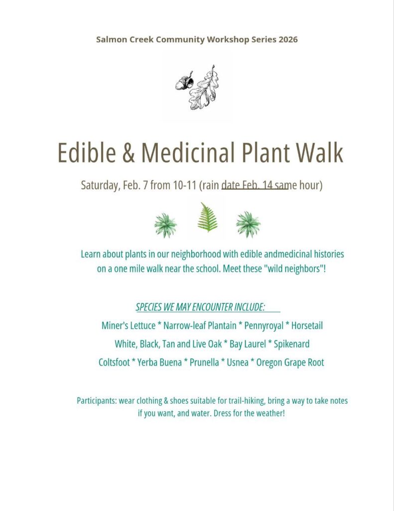 We are excited to share another one of our Community Workshops: an Edible & Medicinal Plant Walk with our lovely former teacher, current board member and beloved neighbor Kato.