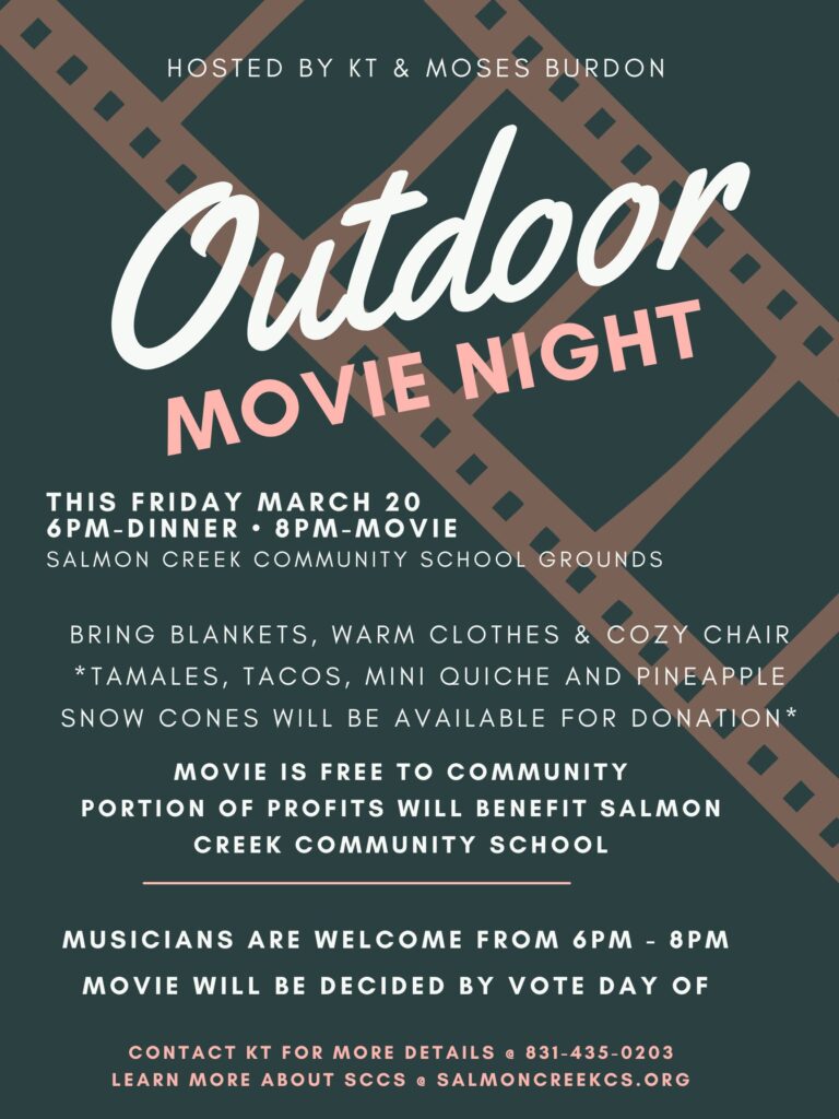Movie Night hosted by KT and Moses happening this Friday, the 20th of March, at 6 p.m. Join in some community fun and enjoy delicious food made with love. Movie starts at around 8, after a communal vote to pick the genre!