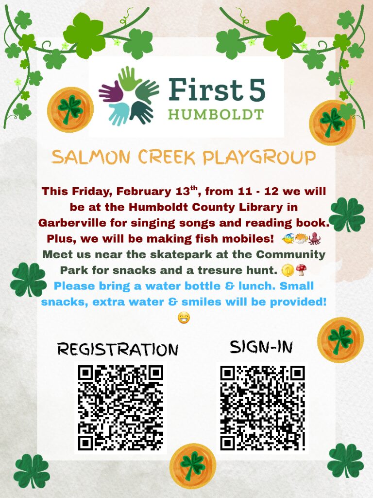 Every second Friday we meet at Garberville Library for story-time, songs and crafts with the librarians from 11 – 12, and then meet up somewhere near by after for more fun and snacks.